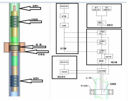 動(dòng)力絞車的鋼繩懸吊封隔器,控制其在油、套管中的起下。